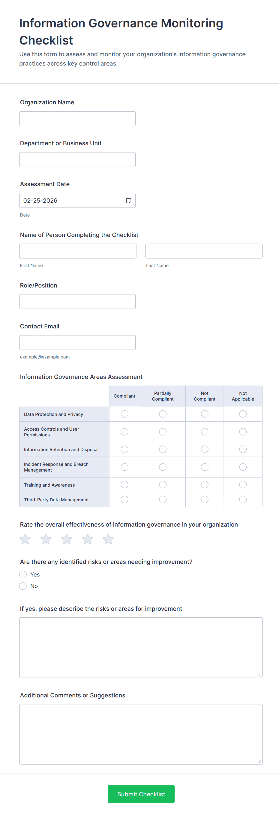 • Enable autoresponder emails to confirm receipt to the person completing the checklist.