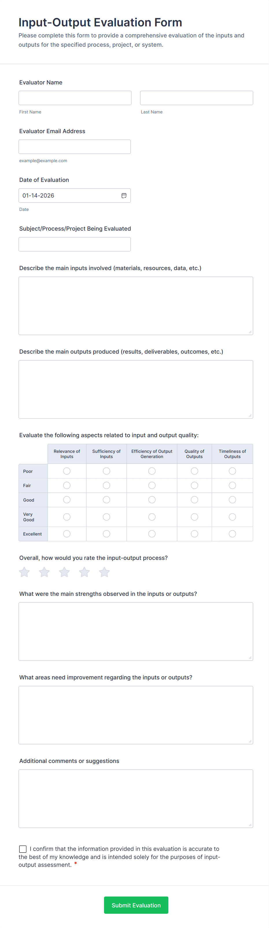 An evaluation form is a structured document or online tool used to collect feedback, assess performance, or measure satisfaction in various settings such as workplaces, schools, events, or customer interactions.