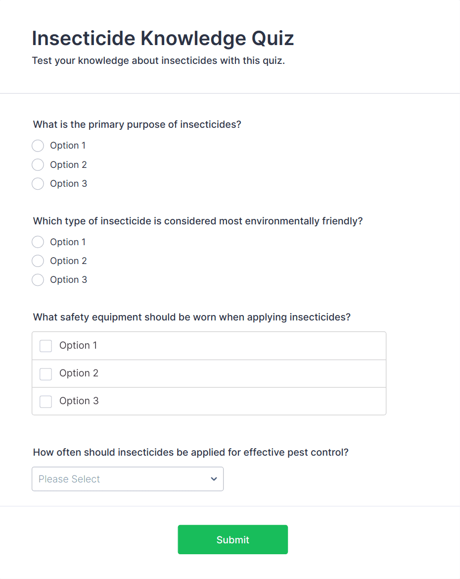 Quiz Templates are pre-designed forms specifically created to facilitate the process of building quizzes for a variety of purposes, such as education, employee training, lead generation, event engagement, and more. These templates provide a structured way to present questions, collect answers, and automatically score or evaluate responses. Whether you’re a teacher assessing student knowledge, a business running a product knowledge test, or a marketer creating a fun personality quiz, Quiz Templates offer a flexible foundation to suit your needs. They can be used for online exams, trivia games, onboarding assessments, customer feedback quizzes, and interactive learning modules.