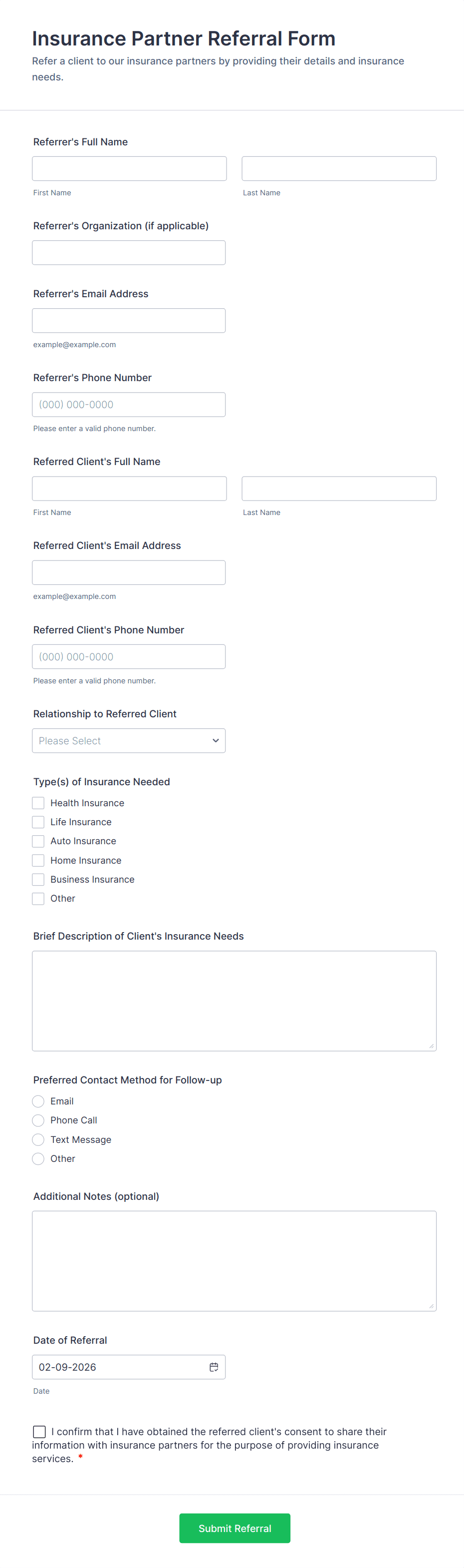 • For healthcare or sensitive referrals, include fields for privacy agreements or HIPAA compliance.