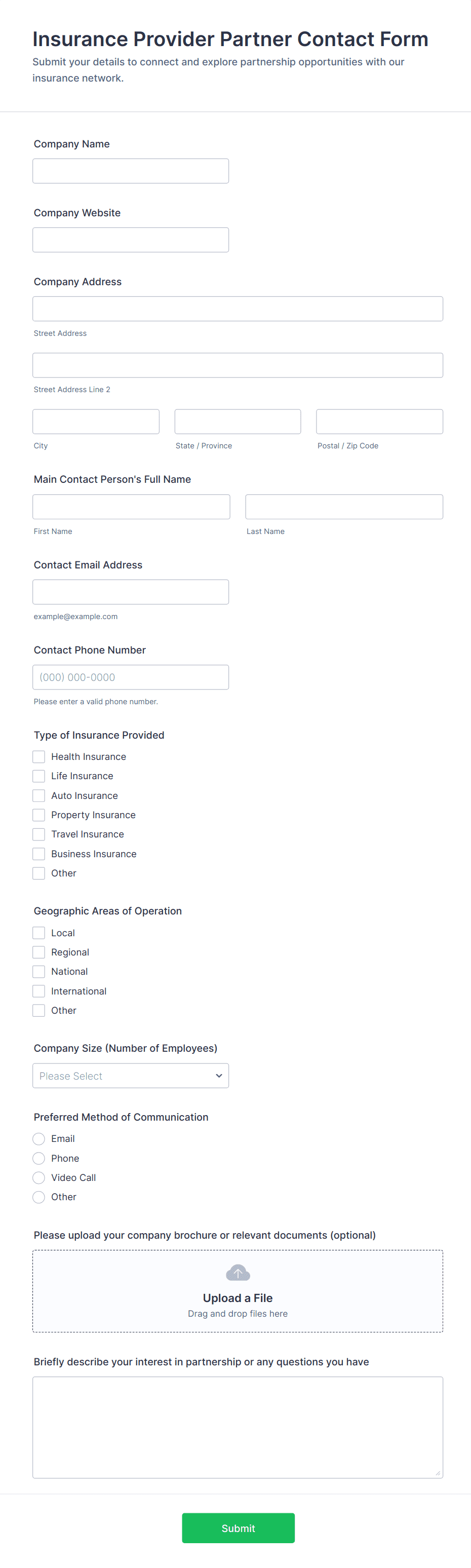Absolutely. Forms can be tailored for health, auto, property, life, travel, and other insurance types by adding or modifying fields to suit specific requirements.