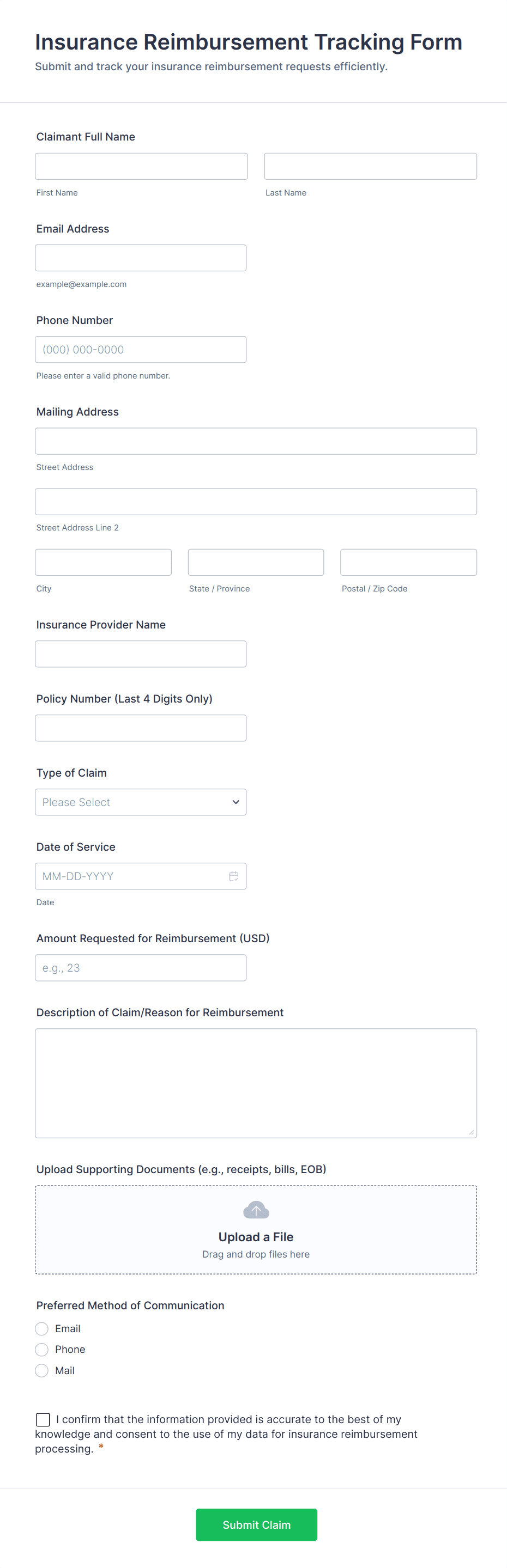 - Use Jotform’s conditional logic to show or hide fields based on user responses (e.g., only display additional fields if a certain claim type is selected).