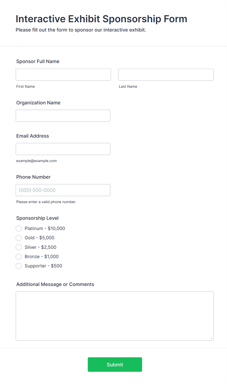 - Sponsorship level or package selection (e.g., Gold, Silver, Bronze)