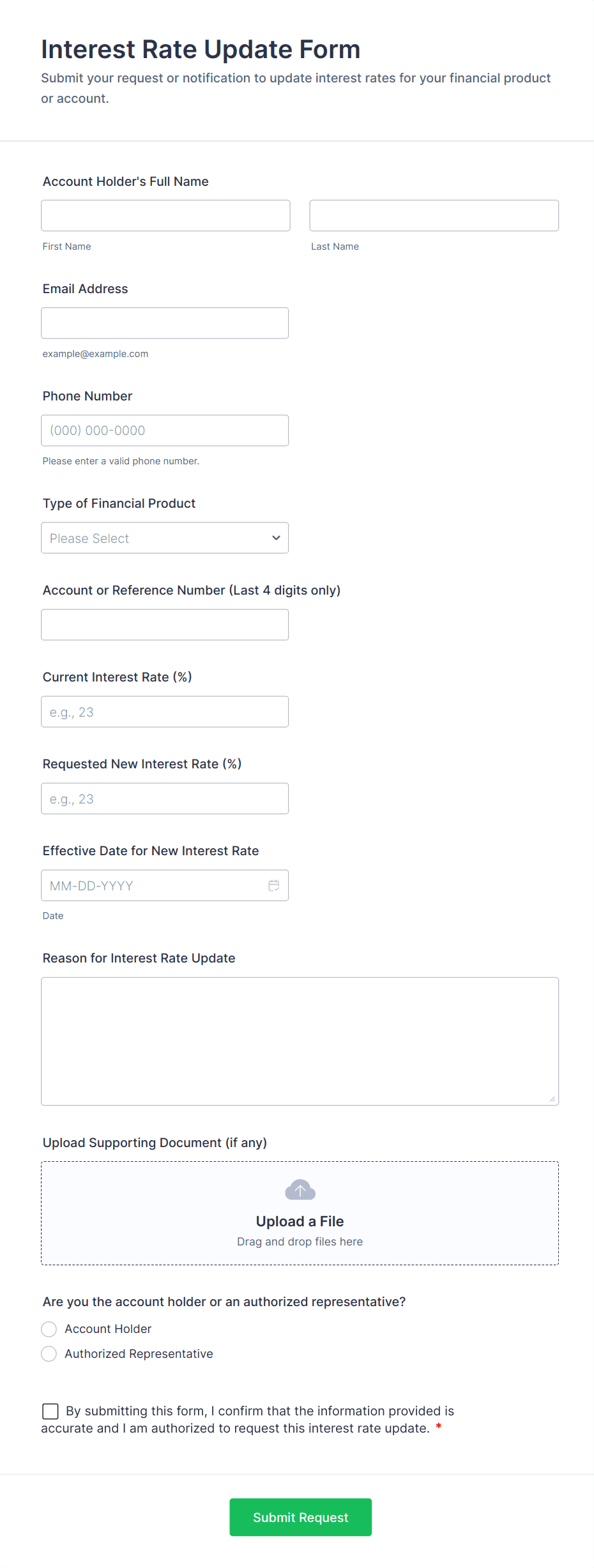 Request forms are essential tools for gathering and organizing information when someone needs to ask for something — whether it’s a service, resource, approval, or support. These forms streamline the process of submitting and managing requests in a wide range of scenarios, such as equipment requests, maintenance requests, time-off requests, IT support, purchase orders, facility bookings, and more. By providing a standardized way to collect all necessary details, request forms help organizations ensure that every request is clear, trackable, and actionable, reducing miscommunication and delays.