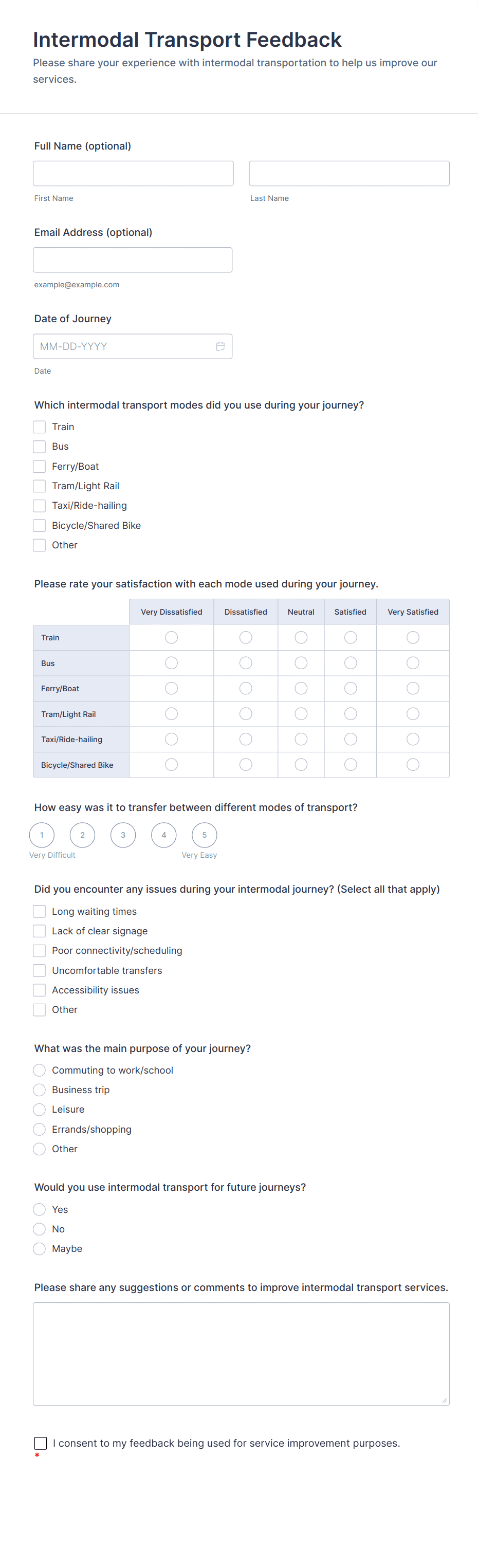 • For customer feedback, include questions about satisfaction, product quality, and likelihood to recommend.