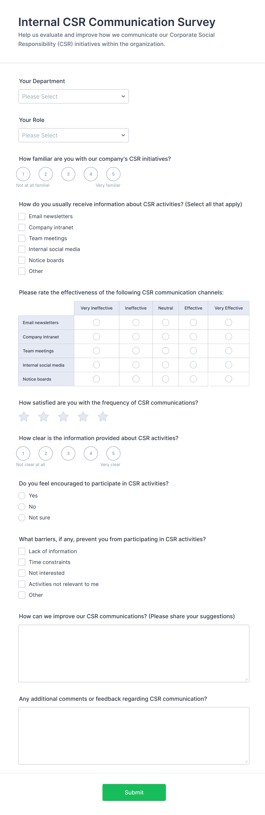 Find out what your employees think of their work environment. Free online survey template. Drag and drop to customize. Connect with 100+ popular apps. No coding.