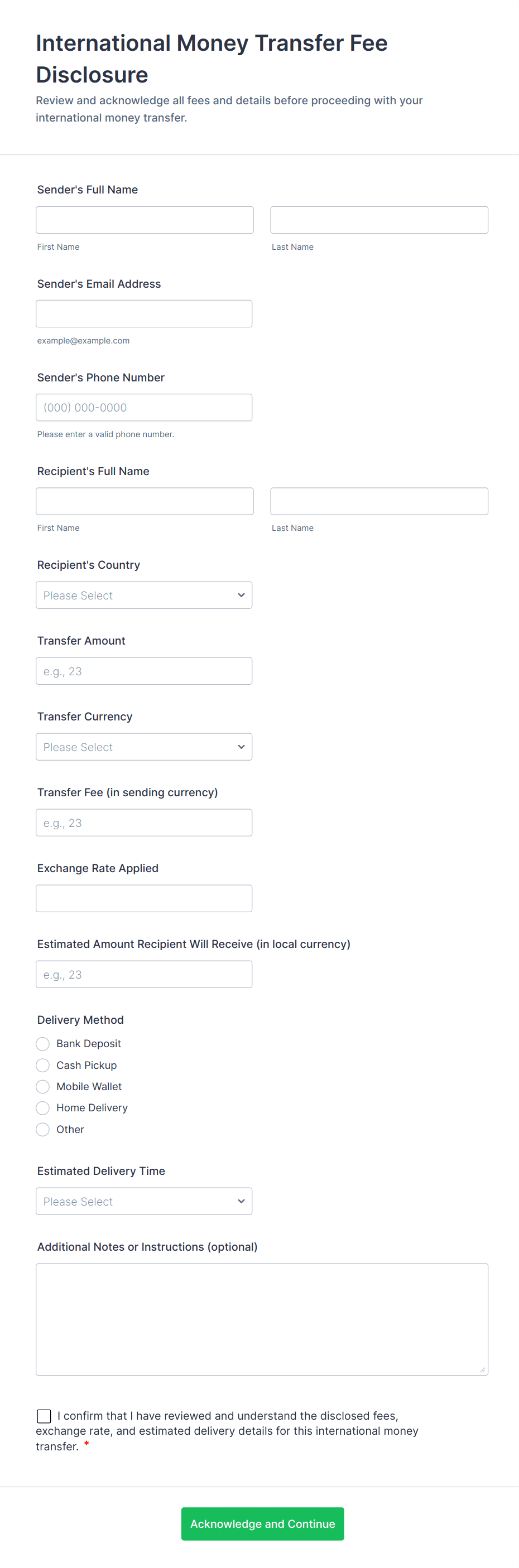 Wire Transfer Form