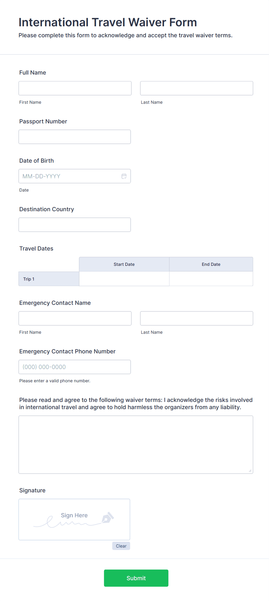 - Content and fields vary by use case: A gym waiver may require health disclosures, while a school field trip waiver may need emergency contact information.