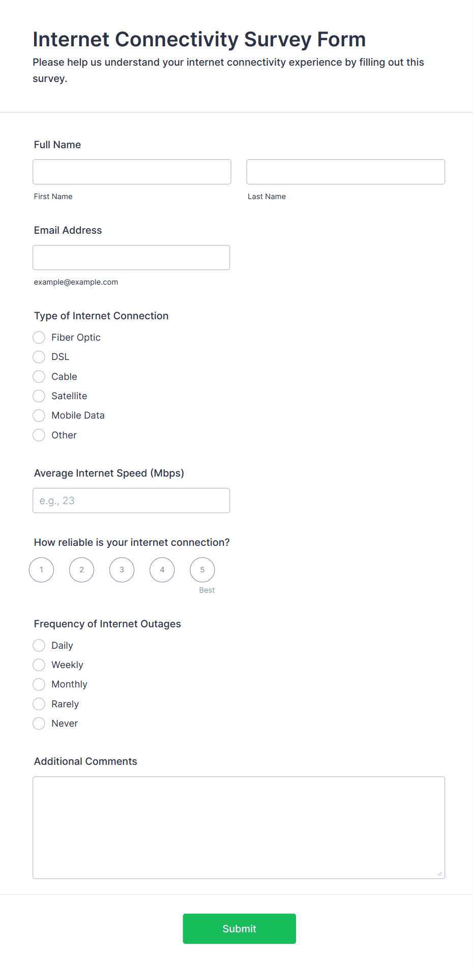A Website Survey is a form template designed to collect visitors' feedback effortlessly. It's perfect for website owners or developers seeking to improve user experience and site functionalities. This intuitive tool saves time, aids in decision-making and enhances customer satisfaction.