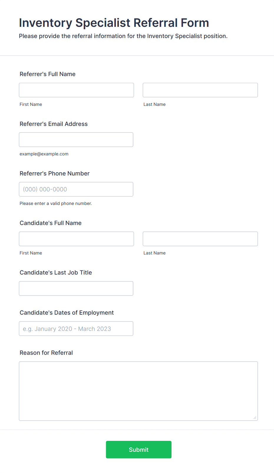 - Employee referral forms might include sections for internal notes or approval workflows.