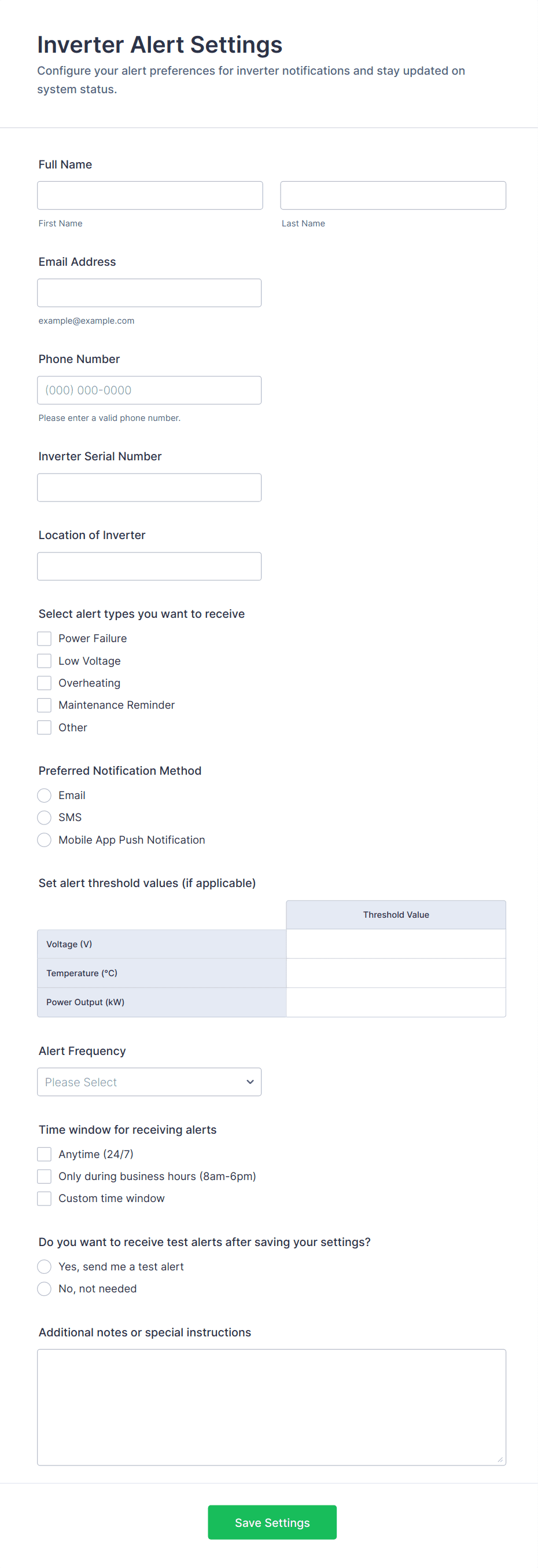 - File upload fields for attaching photos or documents.