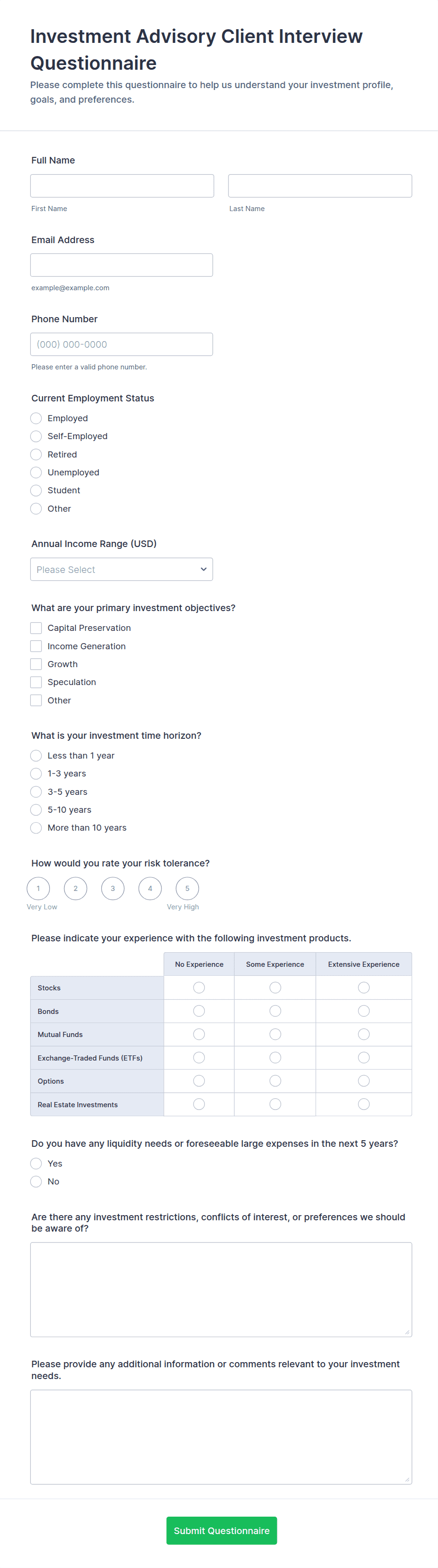 A financial advisor form is a digital document used by financial professionals to collect, organize, and manage client information, risk profiles, investment preferences, and compliance data.