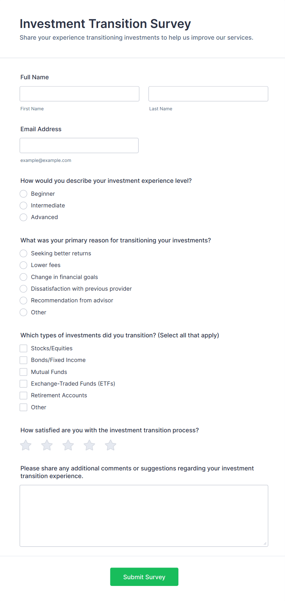 For employee surveys, consider adding anonymity options; for customer surveys, include contact fields if follow-up is needed.