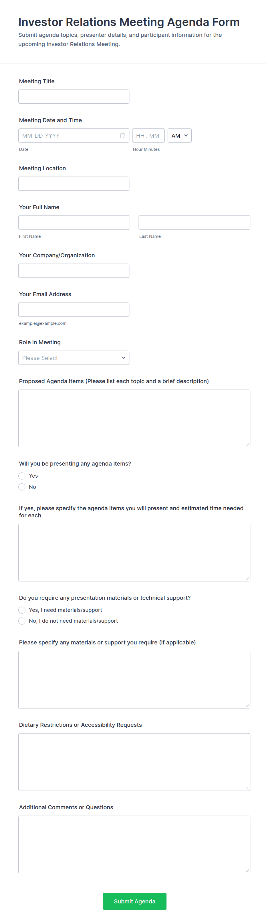 3. What information should be included in a meeting form?