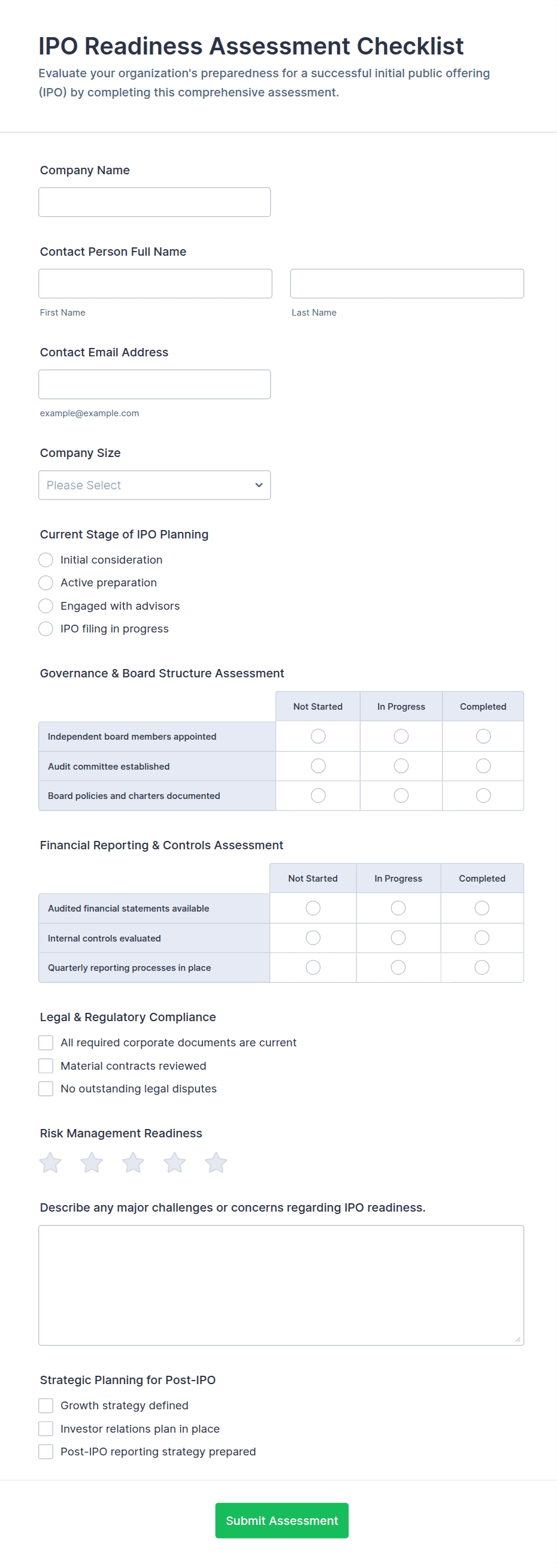 The form templates here are for informational purposes only. Jotform is not providing legal, financial, or other advice, or implying that the forms are legally valid in all or any jurisdictions. Before using any such form, consult an attorney and/or other applicable professionals to make sure that the form meets your needs, legally and otherwise.