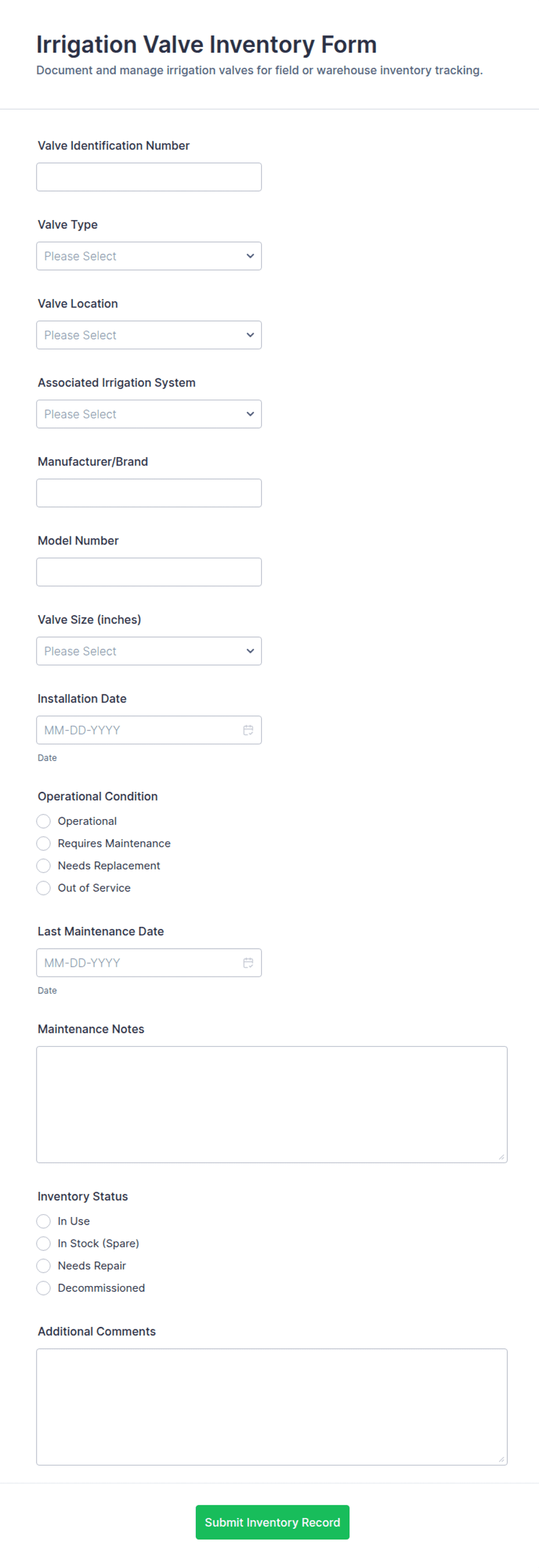 Equipment Inventory Record Form