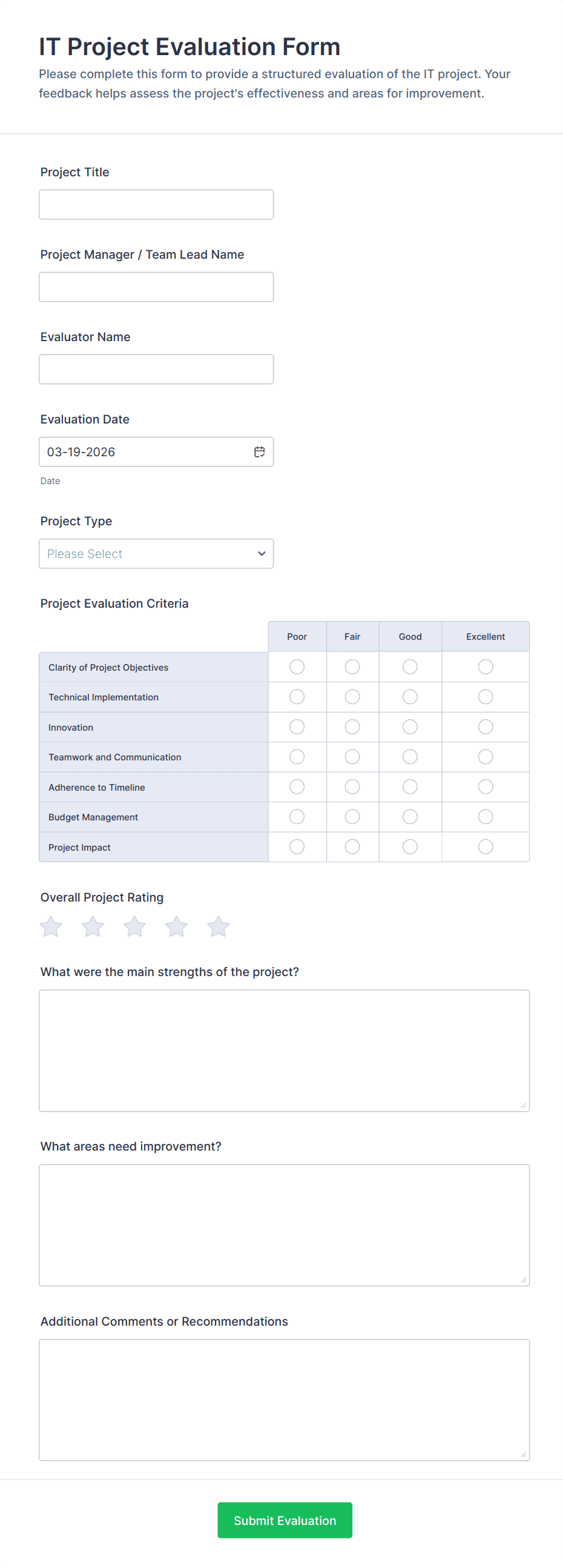 An IT form is an online document used to collect, track, and manage information related to information technology processes, such as support requests, asset management, or system access.