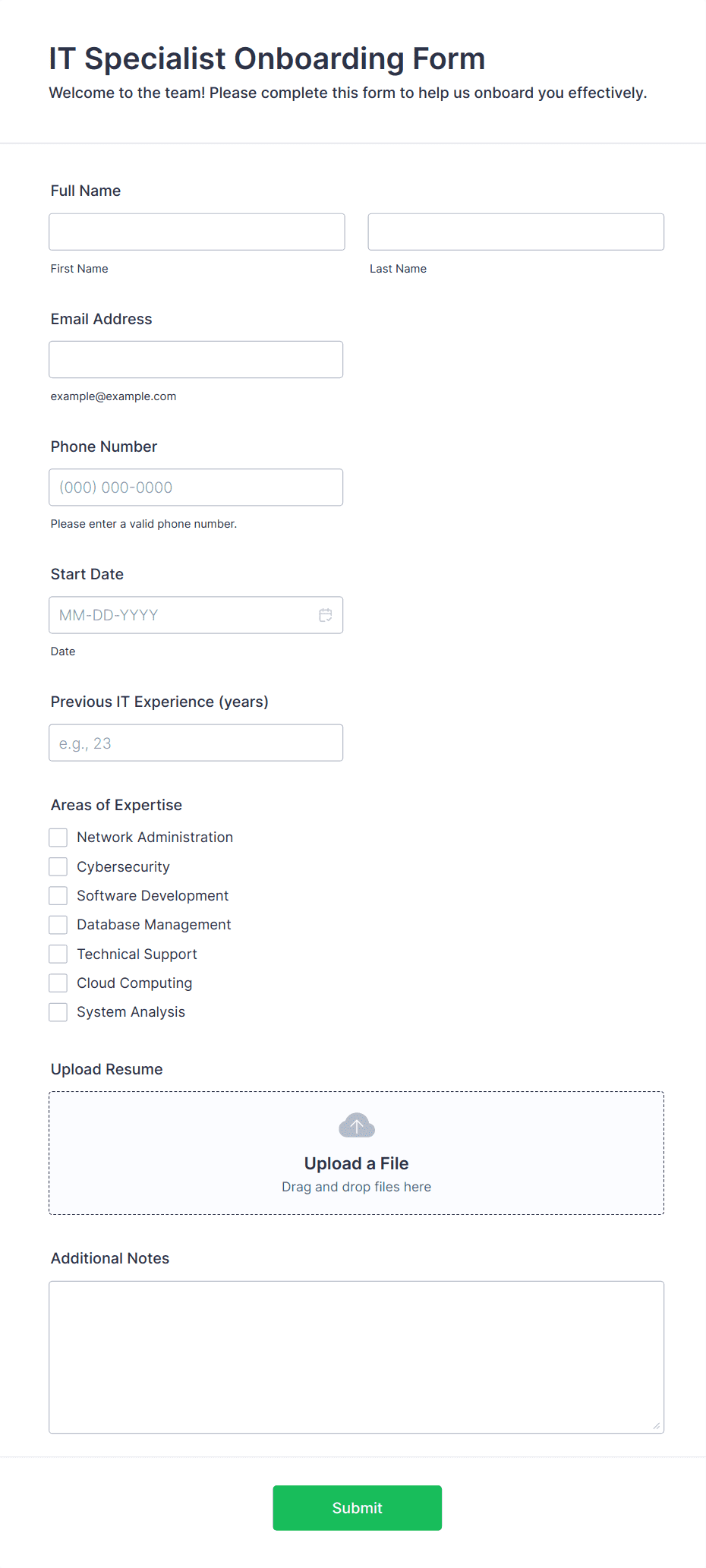 IT professionals, system administrators, HR teams, and any employees needing to submit or manage technology-related requests can benefit from IT forms.