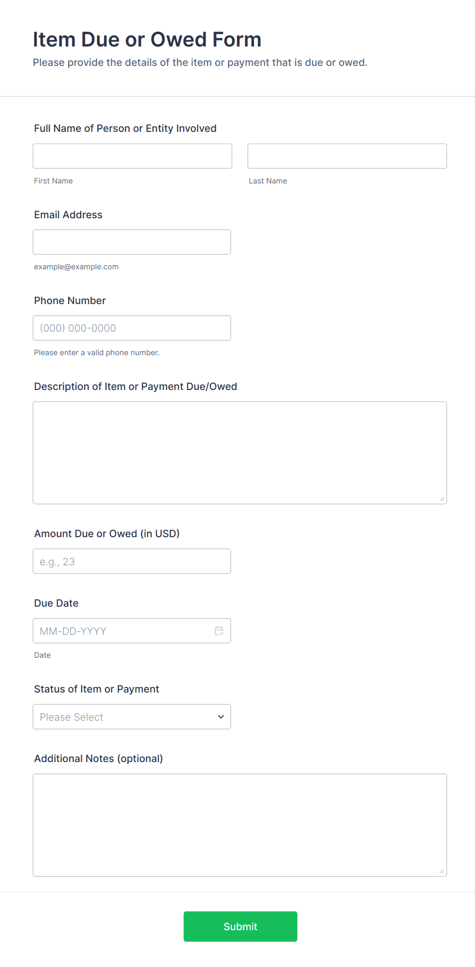 • Inventory Tracking: Forms may include fields for item name, SKU, quantity, location, and restock dates.