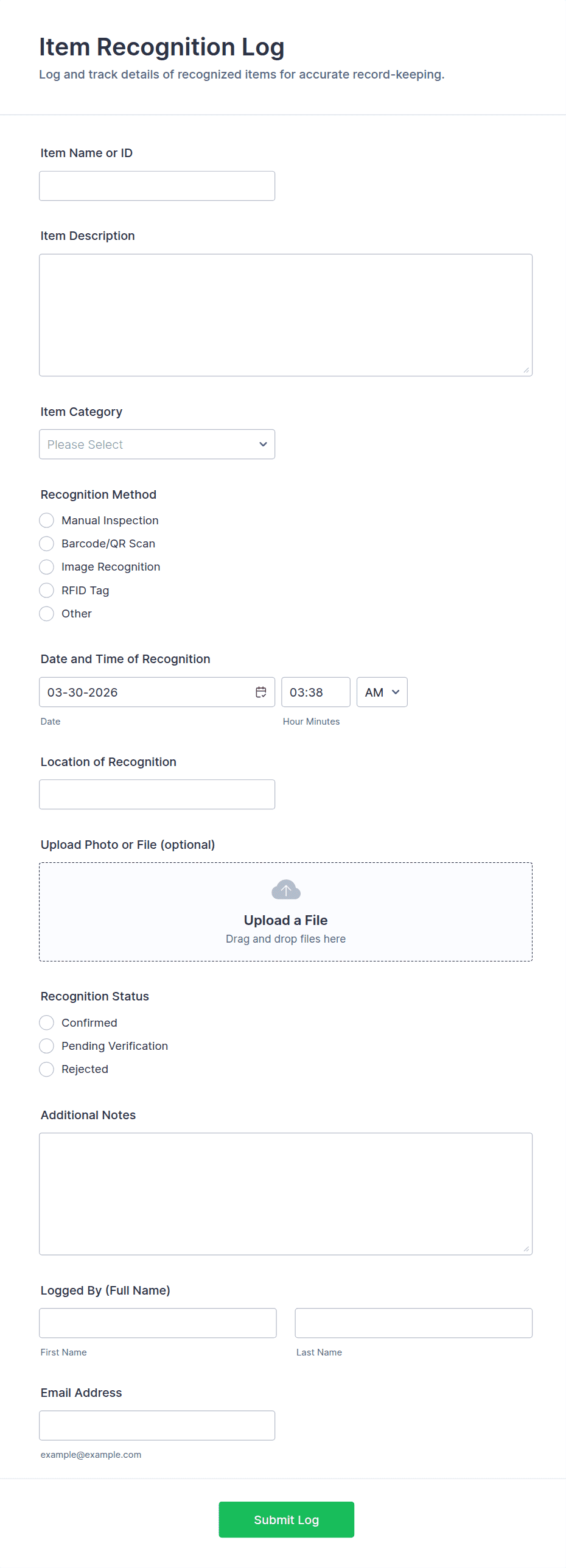 • Inventory Tracking: Forms may include fields for item name, SKU, quantity, location, and restock dates.