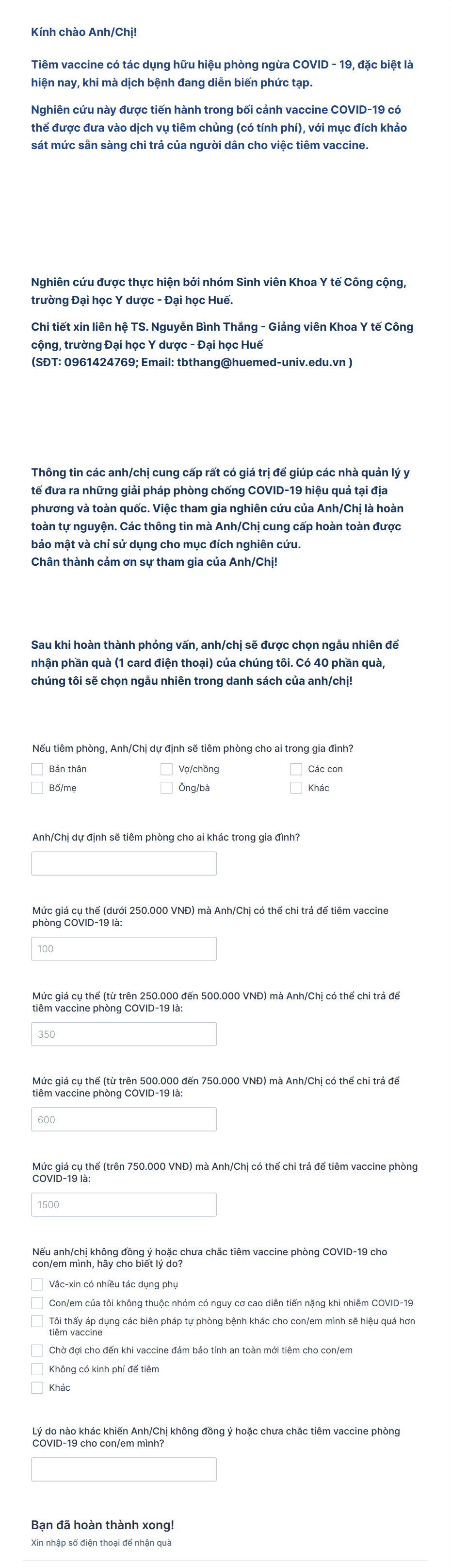 - Additional comments or reasons for choice (short/long text fields)