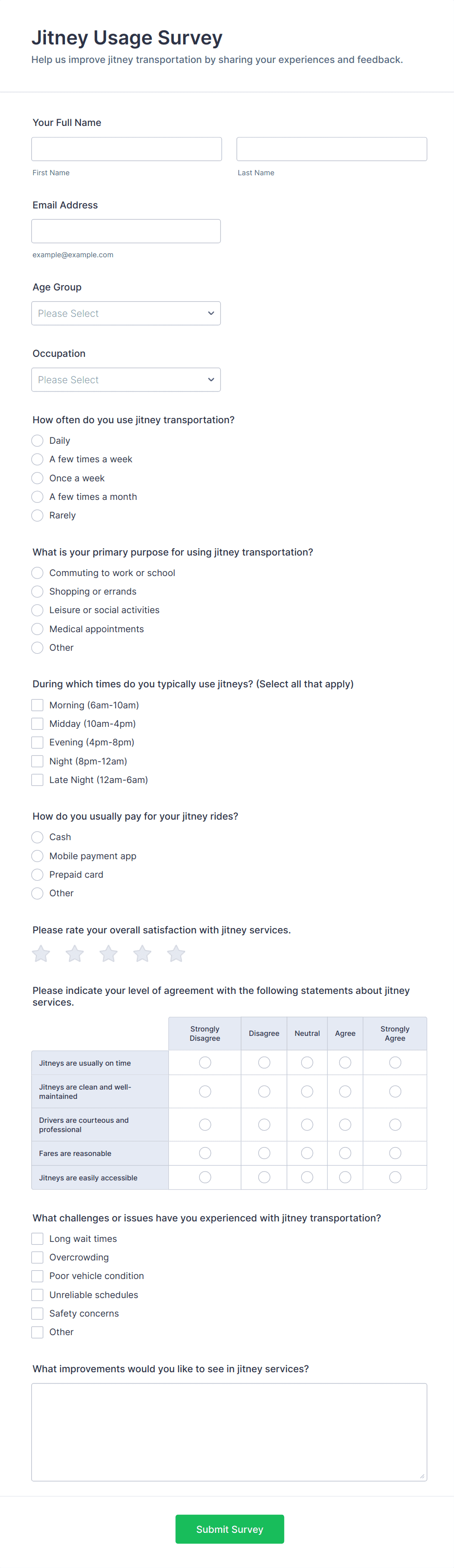 A Website Survey is a form template designed to collect visitors' feedback effortlessly. It's perfect for website owners or developers seeking to improve user experience and site functionalities. This intuitive tool saves time, aids in decision-making and enhances customer satisfaction.