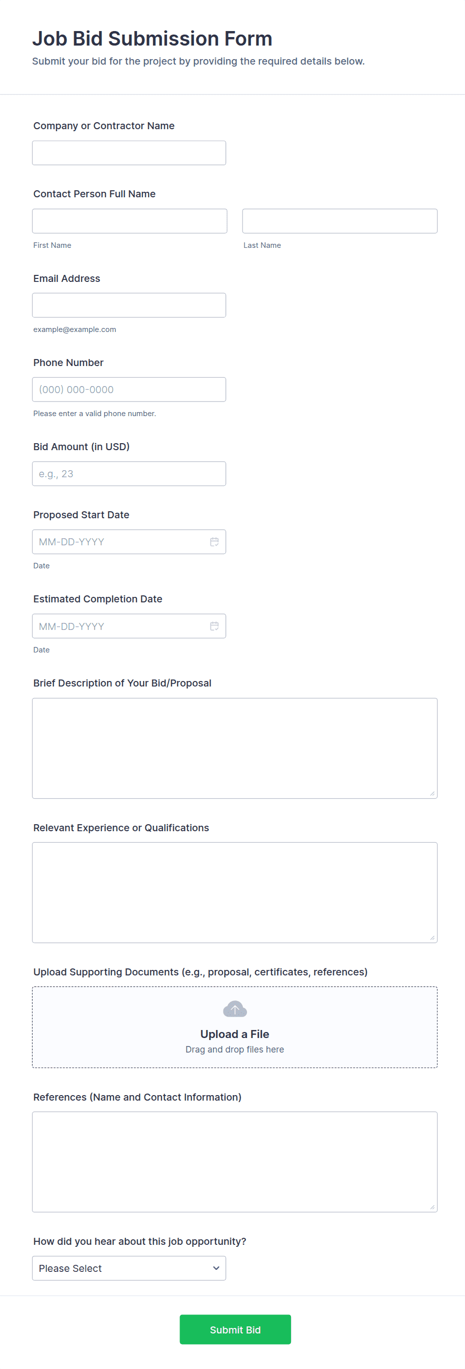 Construction Job Application Form