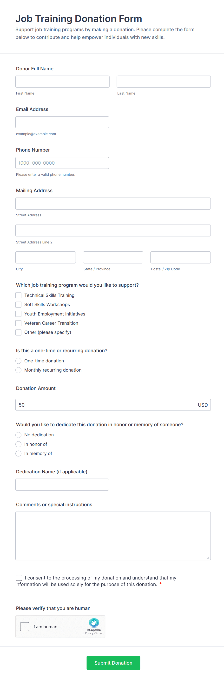 • Memorial or Tribute Donation Forms: Allow donors to dedicate their gift in honor or memory of someone.