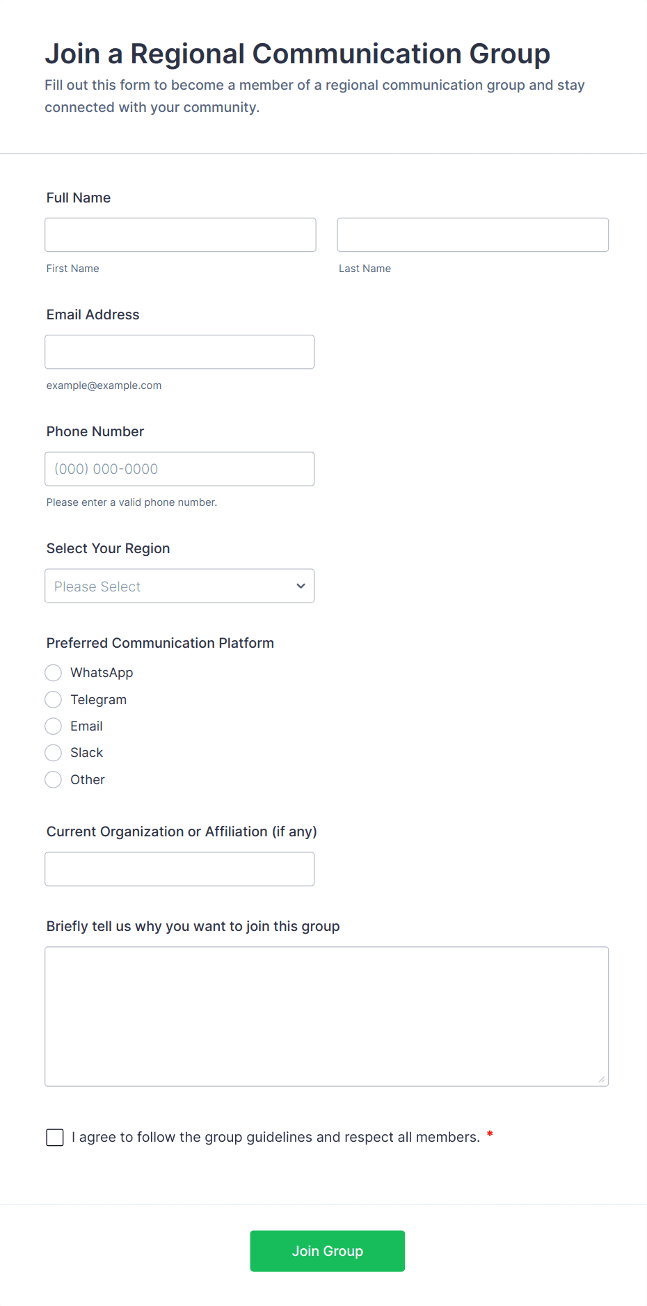 • Newsletter Sign Up: Typically requires only name and email, with optional interest checkboxes.