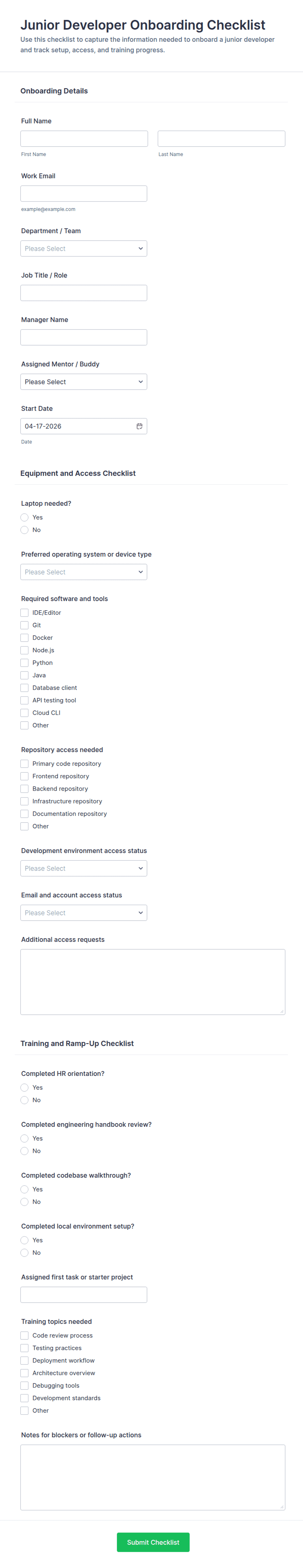 Onboarding Form Templates are specialized digital forms designed to streamline the process of integrating new employees, clients, students, or members into an organization or program. These templates help collect essential information, set expectations, and ensure a smooth transition for newcomers. Common use cases include employee onboarding, client intake, volunteer registration, student enrollment, and vendor onboarding. By standardizing the onboarding process, these forms help organizations gather necessary data, provide important resources, and establish clear communication from the very beginning.