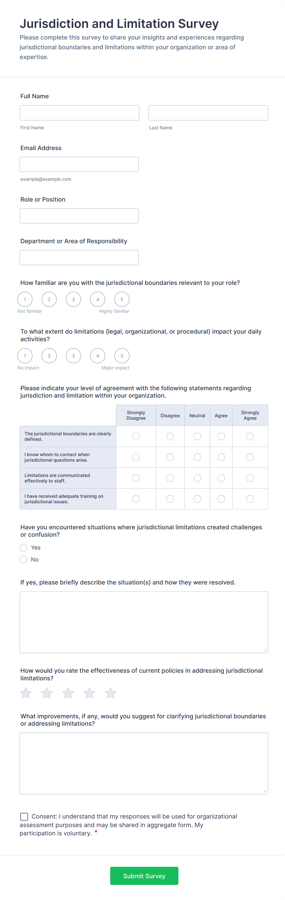For employee surveys, consider adding anonymity options; for customer surveys, include contact fields if follow-up is needed.