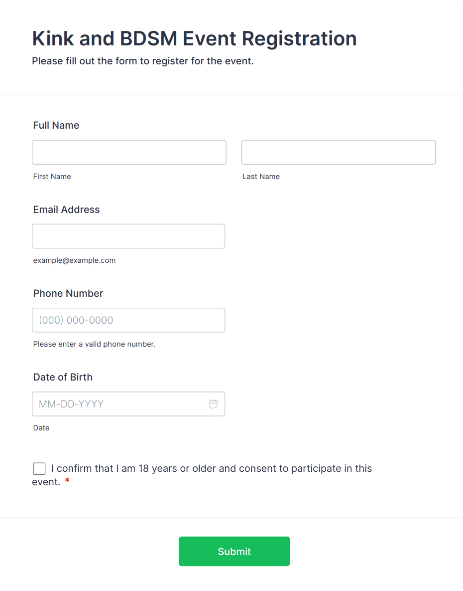 Event Registration Forms are digital tools designed to streamline the process of collecting attendee information for a wide variety of events, such as conferences, workshops, webinars, fundraisers, classes, and social gatherings. These forms allow organizers to gather essential details like participant names, contact information, payment preferences, dietary restrictions, and session selections. By using event registration forms, event planners can efficiently manage RSVPs, track attendance, and ensure a smooth check-in process on the day of the event. The flexibility of these forms makes them suitable for both small private gatherings and large-scale public events, adapting to the unique requirements of each occasion.
