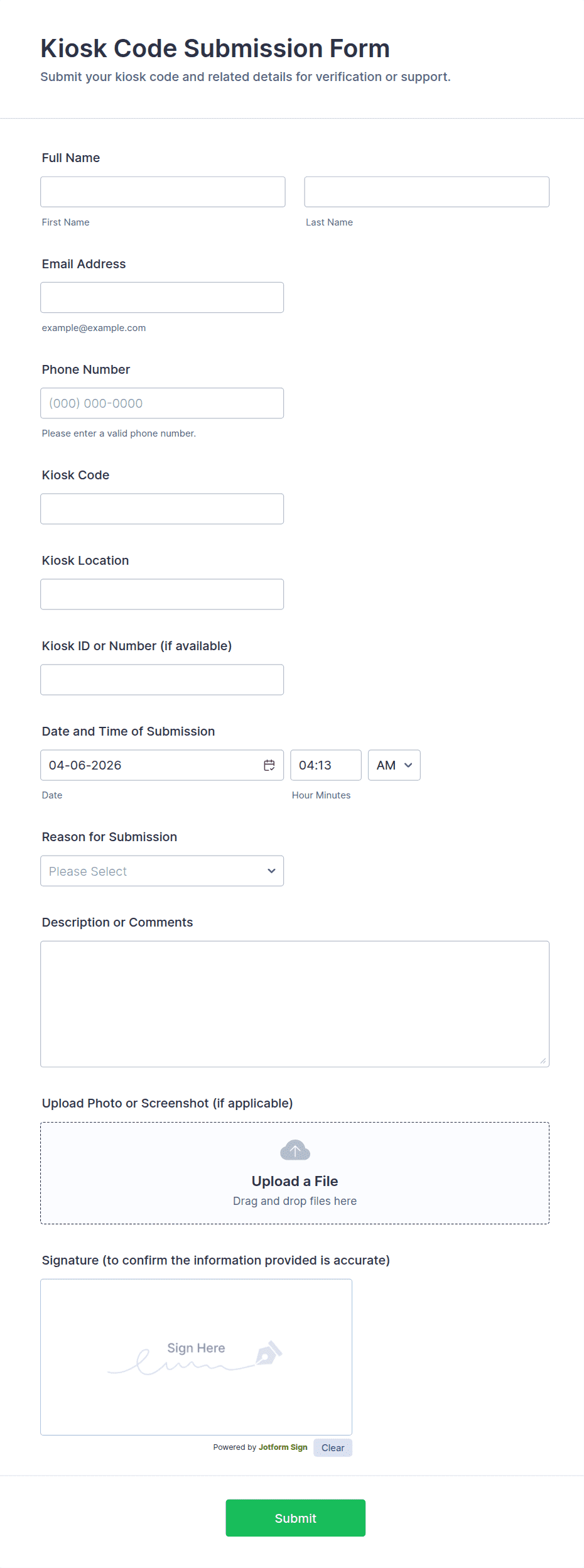 Jotform uses secure data storage and encryption to protect sensitive information. Access to submissions can be restricted to authorized personnel only.