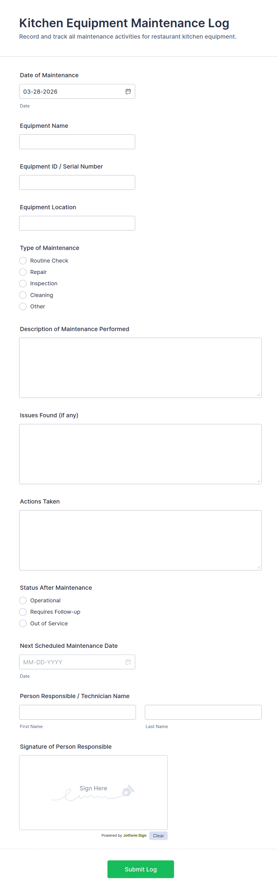 Creating an equipment maintenance form with Jotform helps you standardize maintenance reporting and keep service history organized and easy to track.
