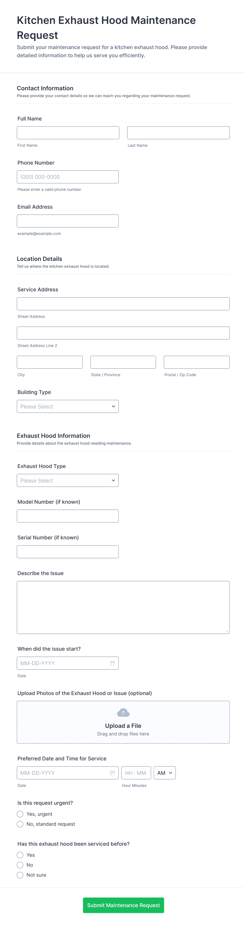 A maintenance request form is used by both property owners and building managers to identify maintenance issues and submit service requests. Easy to use. No coding.