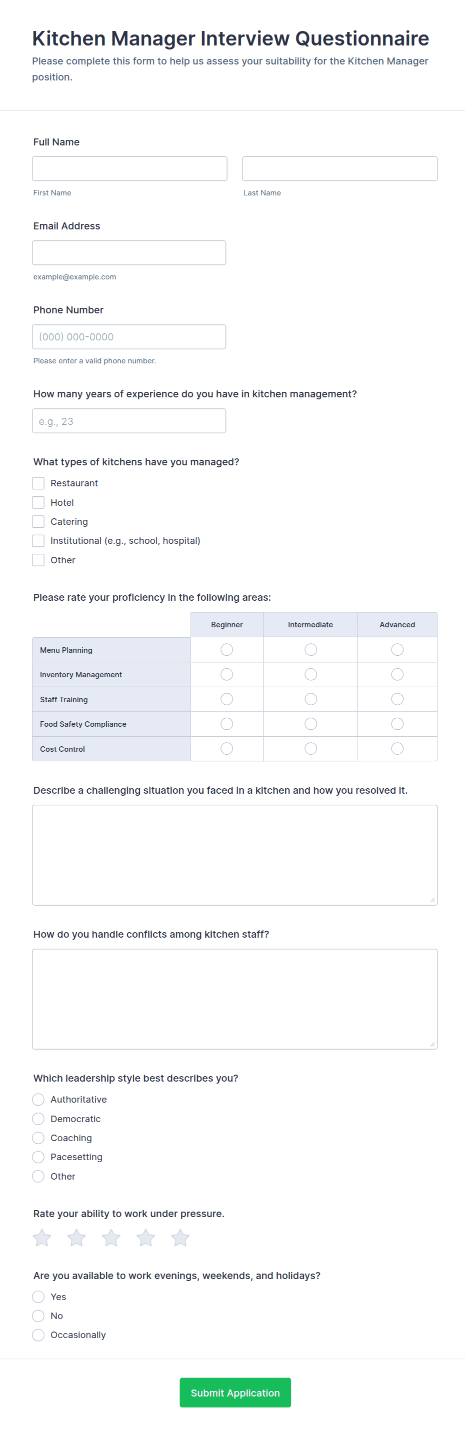 An interview form is a structured document or digital tool used to collect information from individuals during interviews. It standardizes the questions and response formats, ensuring consistency and efficiency in data collection.