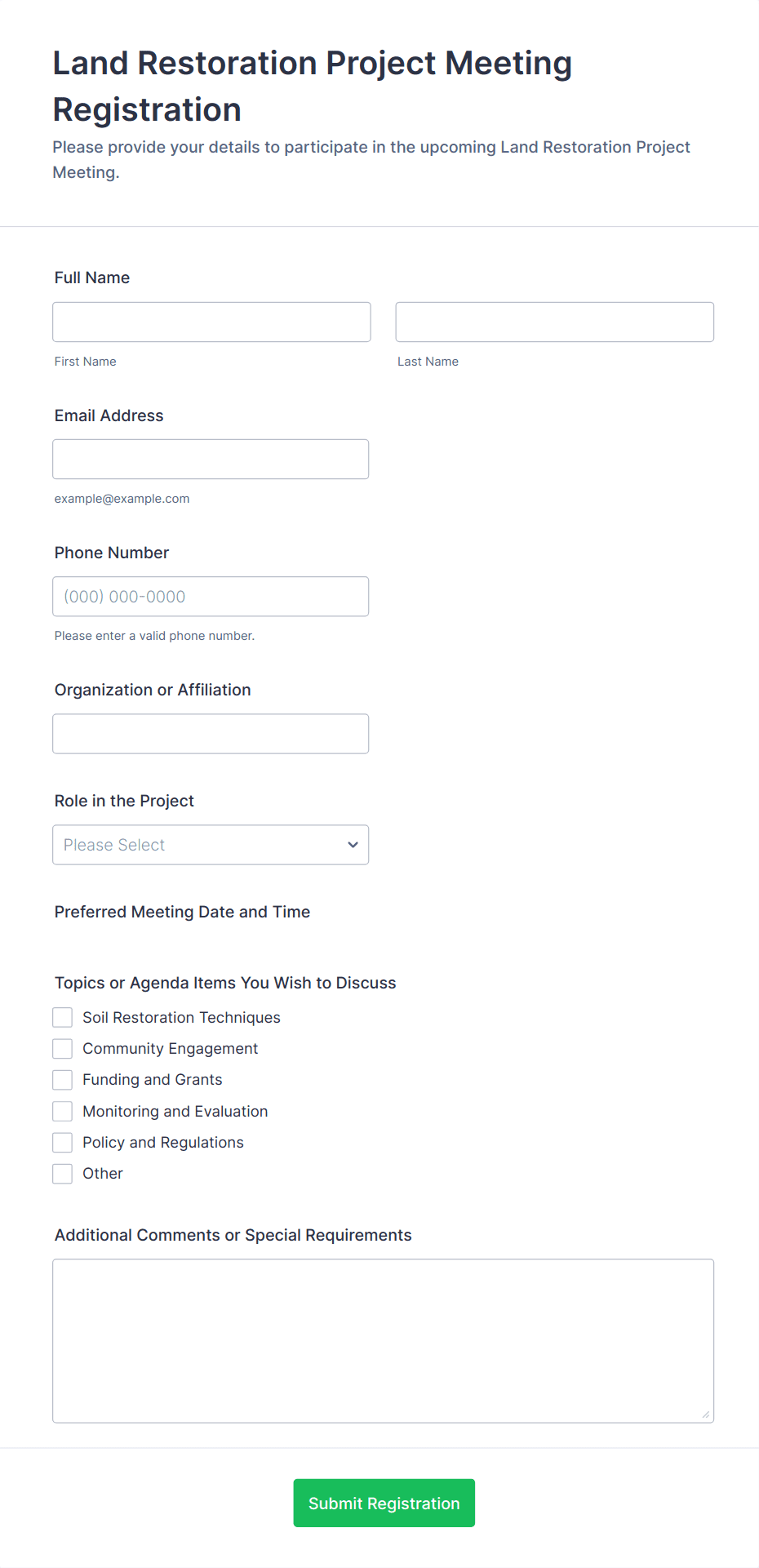 A meeting form is an online tool used to organize, schedule, and manage meetings by collecting essential information such as attendee details, agenda items, and feedback.