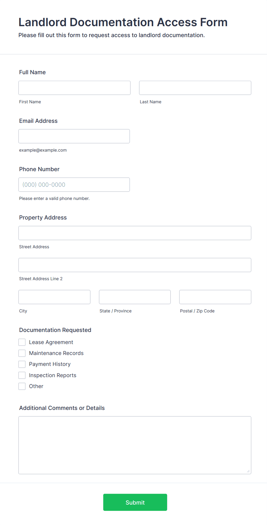 A maintenance request form is used by property owners and managers to order repairs, maintenance, and upgrades for rental properties.