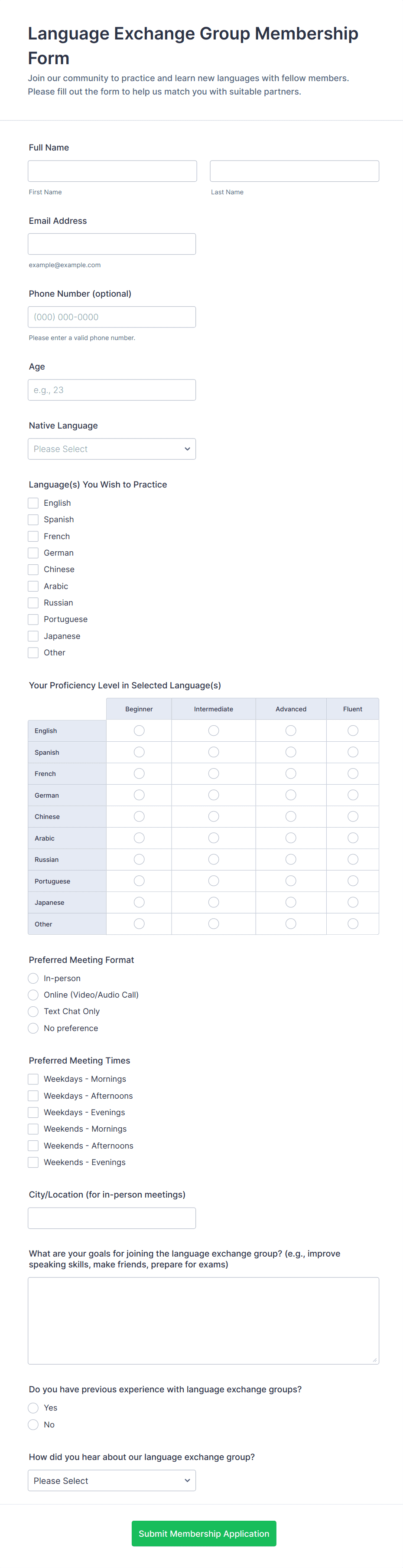 Membership Registration Forms are essential tools for organizations, clubs, associations, gyms, and other groups that require individuals to sign up and become members. These forms are designed to collect vital information from prospective members, such as contact details, membership preferences, payment information, and consent to terms and conditions. Whether you’re managing a professional association, a sports club, a nonprofit, or an online community, membership registration forms streamline the onboarding process, ensure accurate data collection, and help maintain organized member records. Use cases range from annual club sign-ups and event-based memberships to recurring subscription services and exclusive access programs.