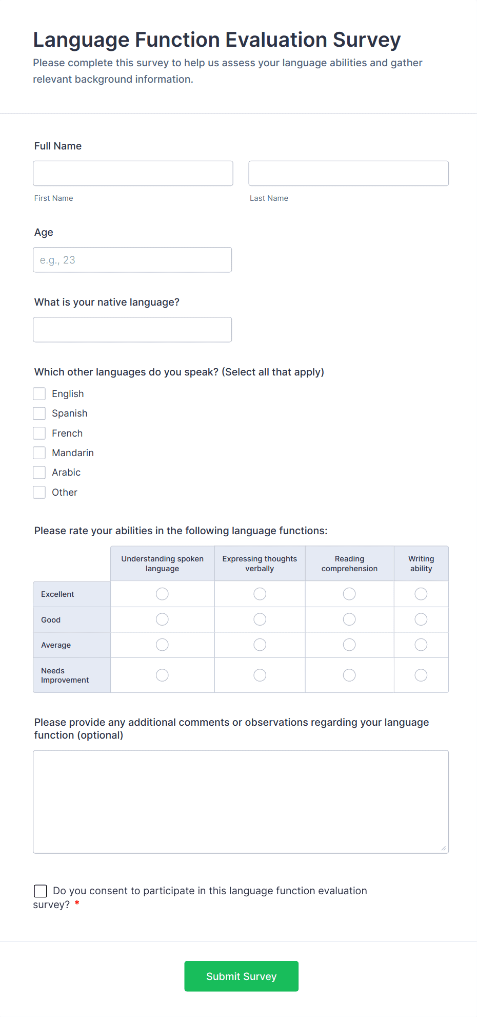 • For parent surveys: Add satisfaction ratings, communication feedback, and suggestions for improvement.