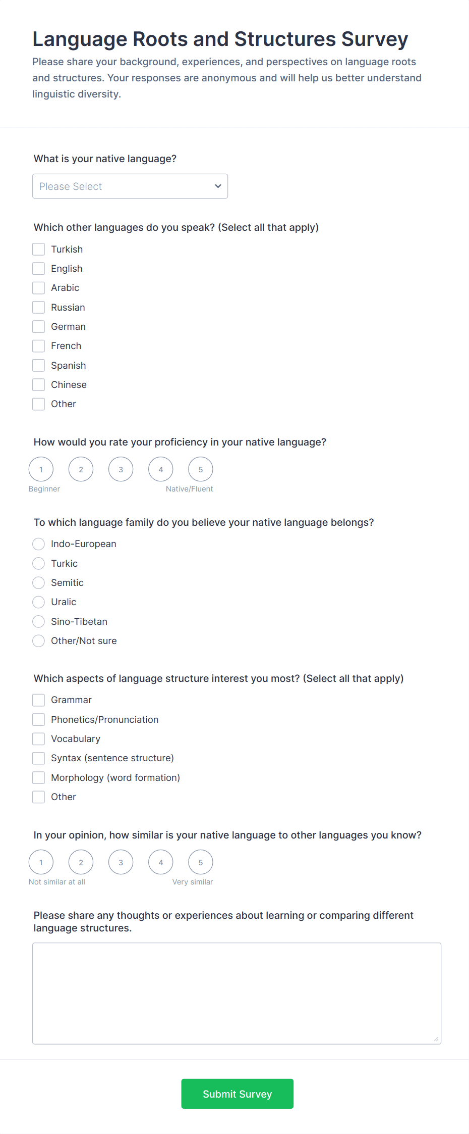 • For parent surveys: Add satisfaction ratings, communication feedback, and suggestions for improvement.