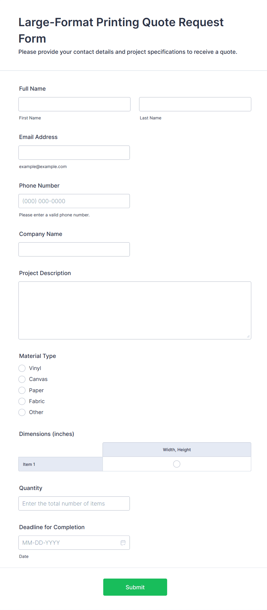• Service Bookings: Forms might require date/time pickers, service options, and customer contact details.