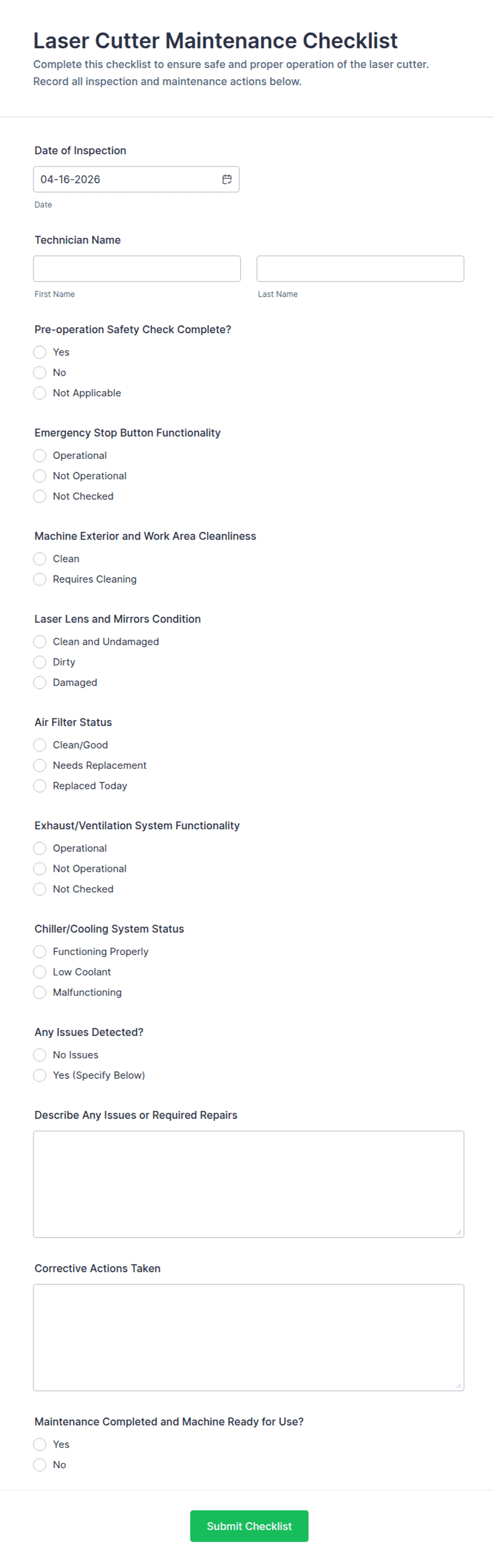 - Preventive maintenance checklist submissions