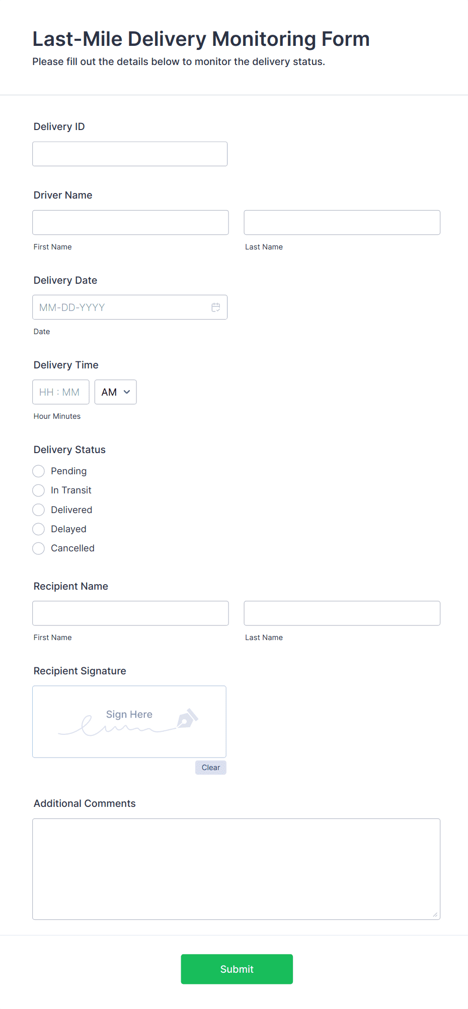 • Logistics and Courier Services: Delivery companies use forms to record package details, assign drivers, and capture recipient signatures.