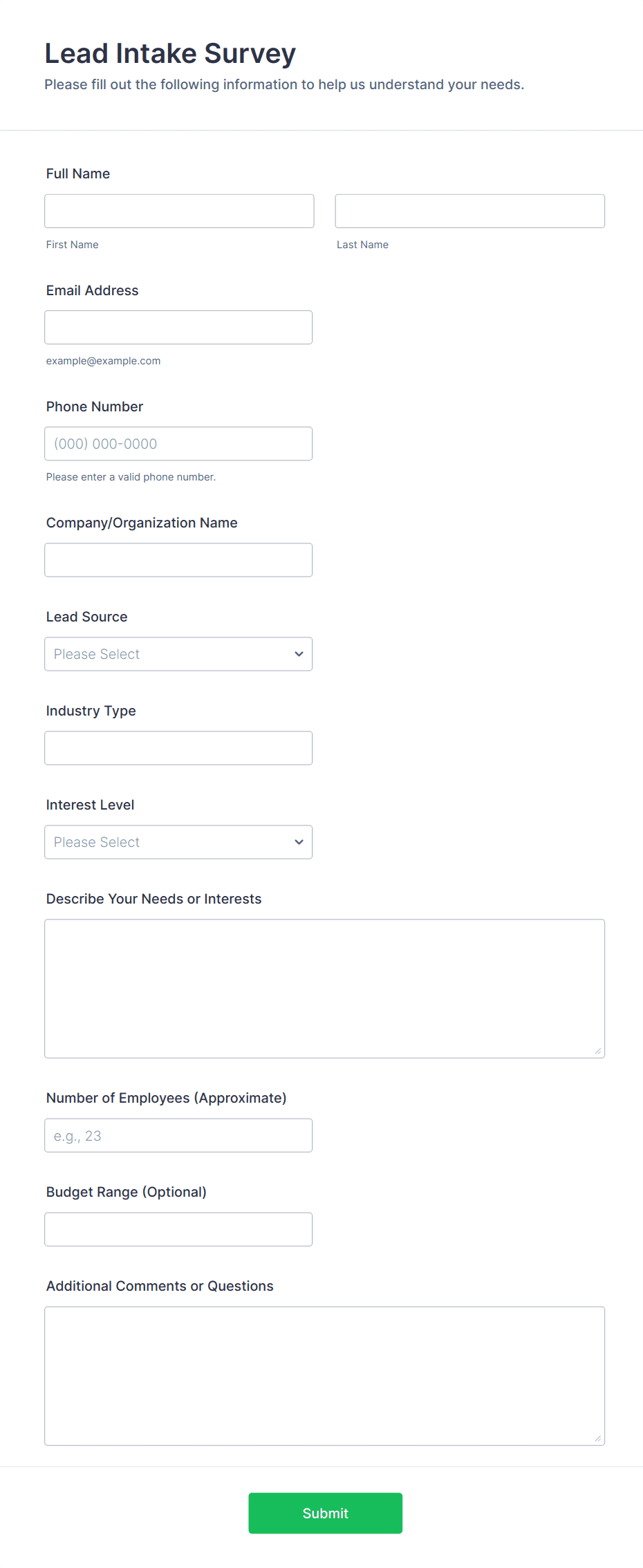 - Helps qualify leads by capturing specific information (e.g., budget, company size).