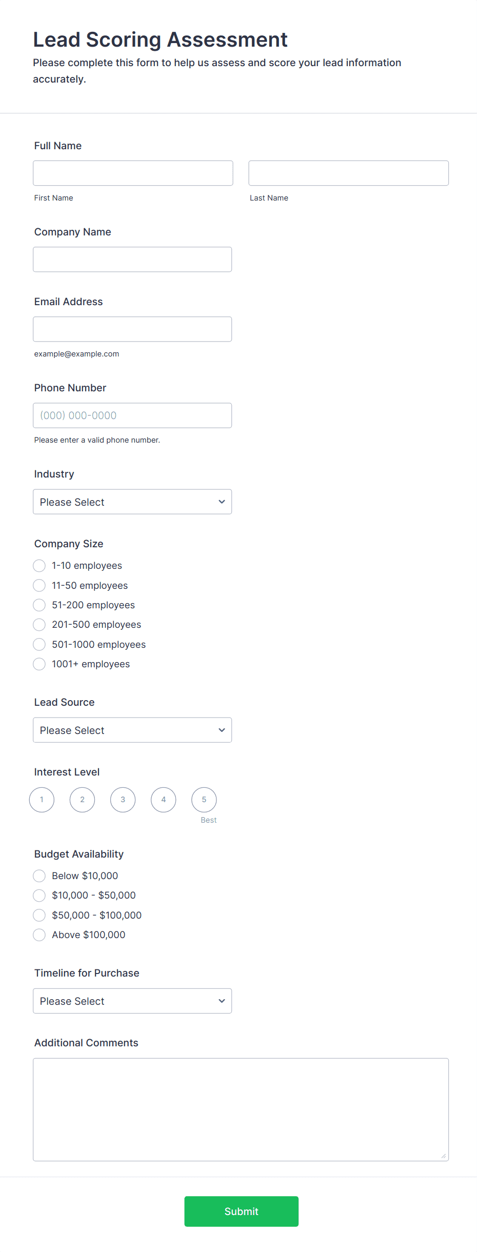 • Helps qualify leads by capturing specific information (e.g., budget, company size).