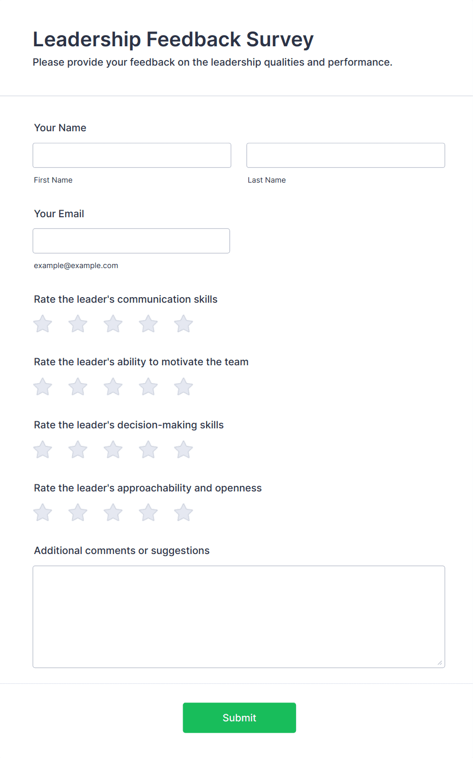 • Use the drag-and-drop Form Builder to add fields relevant to your feedback goals. Common elements include: