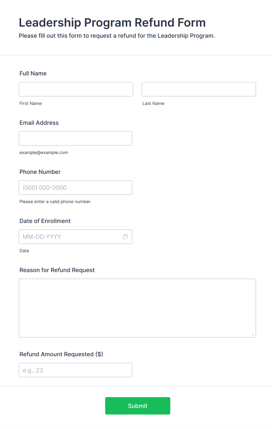 • For job applications, include fields for personal information, education, work experience, references, and file uploads for resumes or cover letters.