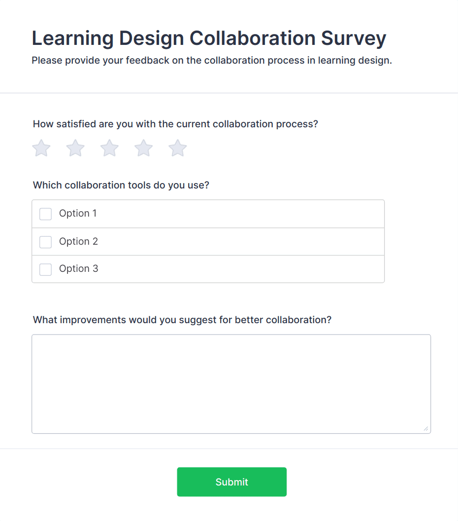 Education surveys are specialized tools designed to gather feedback, opinions, and data from students, teachers, parents, and educational staff. These surveys can cover a wide range of topics, including course evaluations, student satisfaction, teacher performance, classroom climate, learning outcomes, and parental involvement. By collecting structured responses, education surveys help schools, universities, and training centers make informed decisions, improve teaching methods, and enhance the overall learning experience. Use cases range from end-of-term course feedback and campus climate assessments to alumni follow-up surveys and needs assessments for new programs.