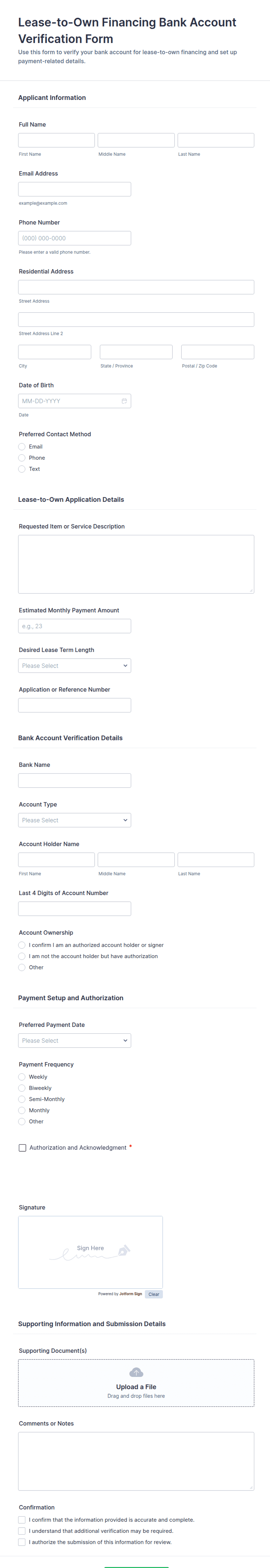 Verification forms are specialized digital tools designed to authenticate, validate, or confirm information provided by individuals or organizations. These forms are commonly used to verify identities, credentials, employment status, addresses, or other critical data points in a secure and efficient manner. Typical use cases include onboarding new employees, confirming student enrollment, validating customer identities for financial services, or ensuring the accuracy of submitted documents in compliance processes. By streamlining the verification process, these forms help organizations reduce fraud, maintain regulatory compliance, and build trust with their stakeholders.